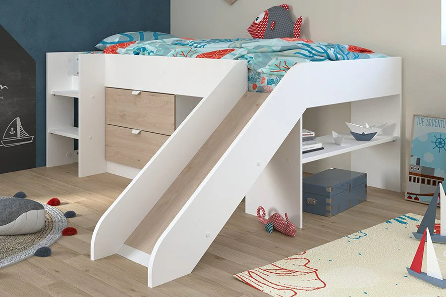 Shelter køyeseng med skuff – Hvit/Brooklyn eik