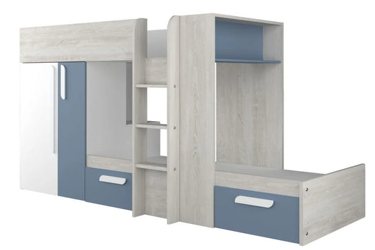 Melbourne køyeseng med skap og skuffer 90x200 - smokey blue - kan speilvendes!Vanlig pris 13.890,00 krVanlig prisEnhetspris / per-