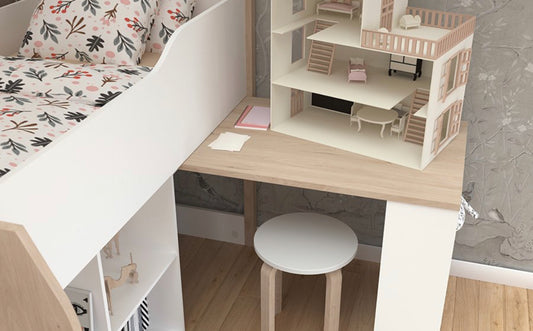 Oppdag vårt utvalg av senger og sminkebord som kombinerer funksjon og stil. Perfekt for å skape et koselig, personlig rom som barna vil elske – med både god soveplass og et sted for lek og kreativitet.