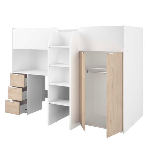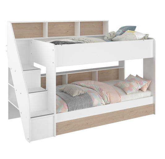 Shelter køyeseng med skuff – Hvit/Brooklyn eik