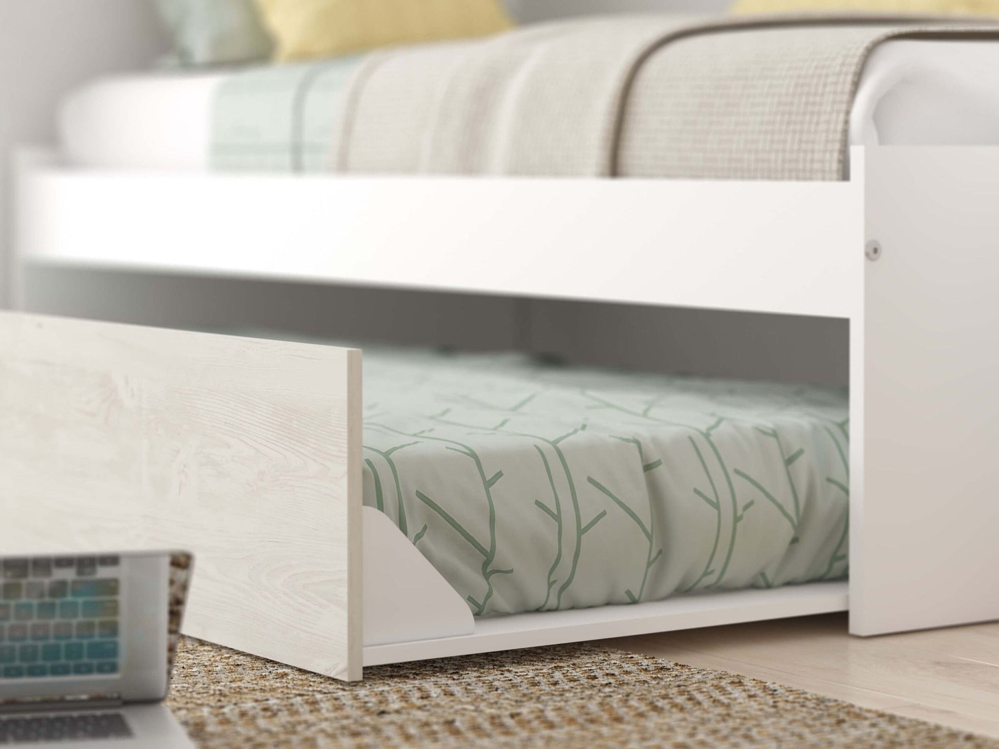 - Madrassmål: 200 cm x 90 cm (hovedseng), maks 18,6 cm høyde for uttrekkssengen. Madrasser må bestilles i tillegg! Sengebunner er inkludert!