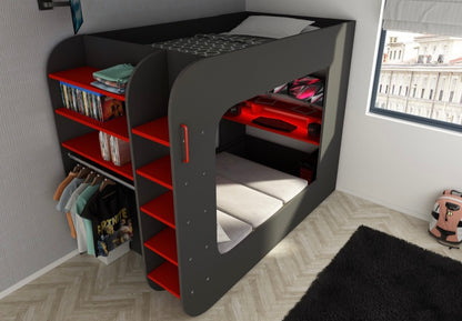 Gamer ULTIMATE loftseng i størrelsen 120x200 er en imponerende drømmeseng skapt spesielt for gamere. Dette er den optimale loftsengen med rikelig plass til gaming og lekser under sengen. Denne modellen skiller seg fra andre loftsenger med madrassmål på 90x200, da den har imponerende 120x200, som gir en romslig plass under sengen. Dette resulterer i en optimal utnyttelse av rommet med en komfortabel soveplass øverst og et romslig gaming-område under sengen. Med denne loftsengen blir rommet forvandlet til den ultimate gaminghulen. Denne loftsengen vil gi barna og ungdommene som gamer i huset et møbel de vil huske lenge.